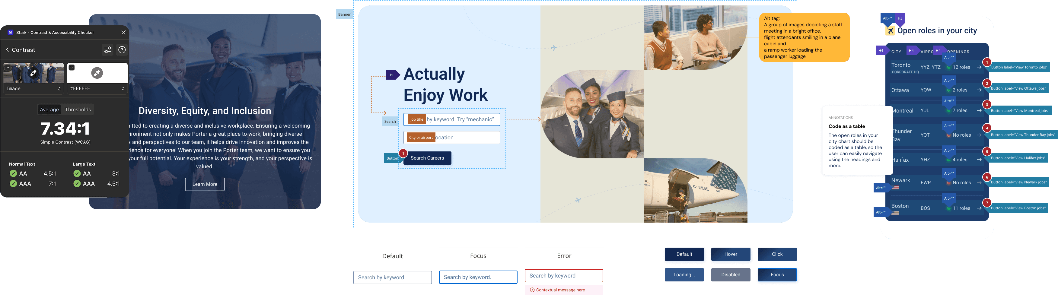 Accessible, content-rich pages: Delivered five new pages plus one updated flow, all meeting WCAG 2.2 standards, ensuring an inclusive experience for all candidates.