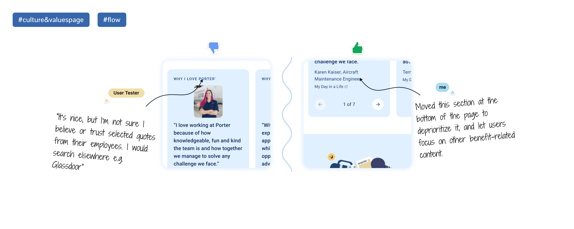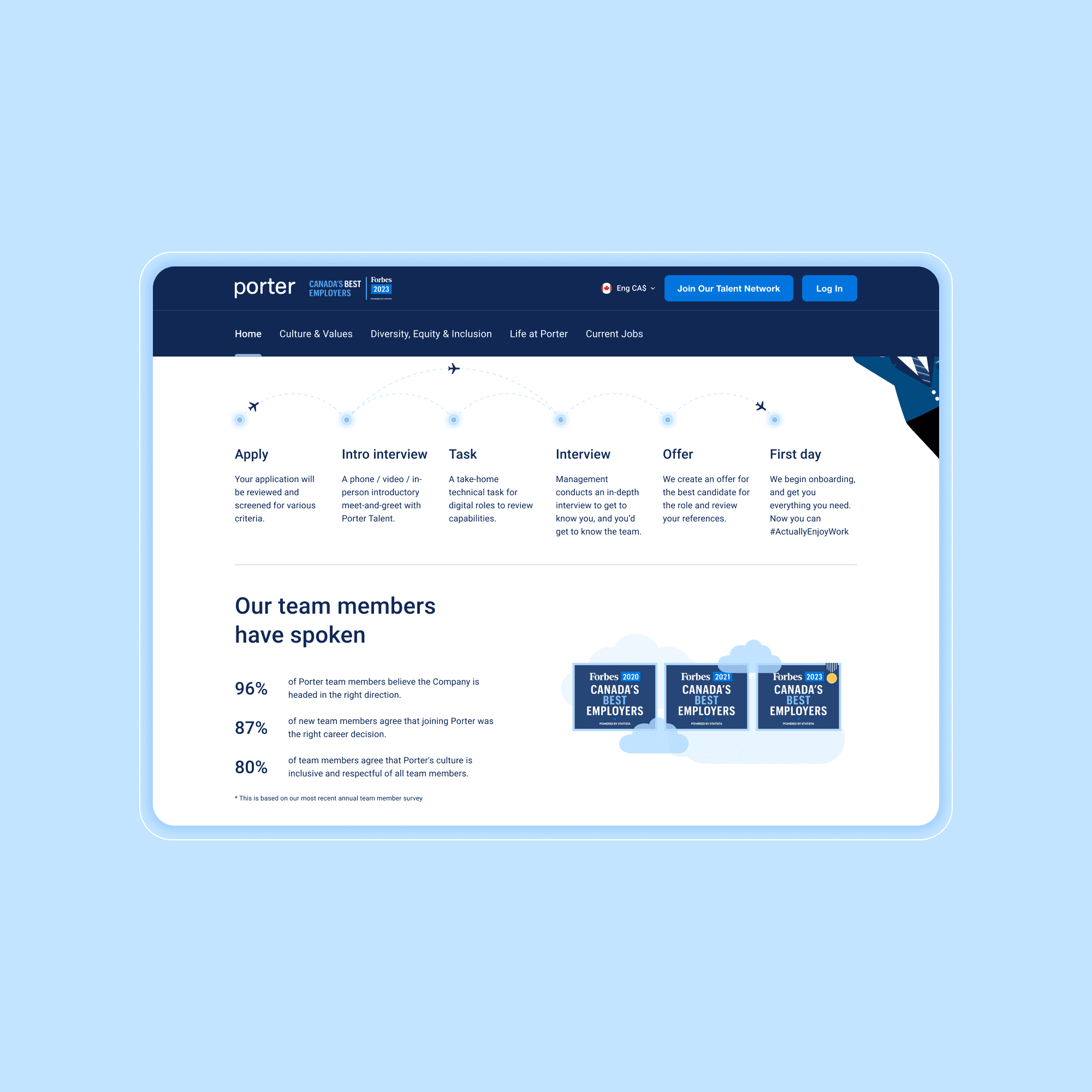 Built trust in Porter: Transparent design communicated company stability and people-first values, reassuring applicants about the organization.